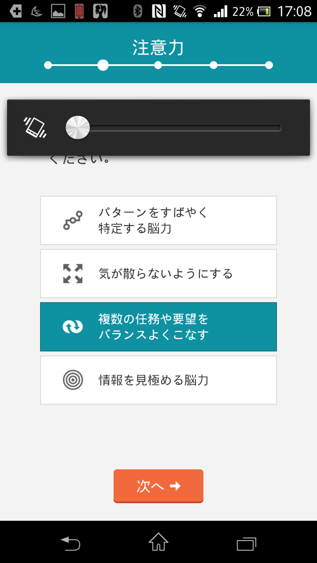 まずは、メールアドレスを登録するかFacebookアカウントでユーザー登録をします。脳の中で何を鍛えたいか「柔軟性」「スピード」「記憶力」などの項目でそれぞれ鍛えたい項目を選び、登録します。